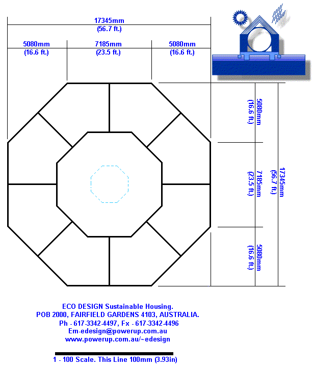 Keep internal walls perpendicular (at right angles) to the external walls. This will reduce tight unuseable corners. If you are planning on walls which will be under the cupola; will they go all the way to the ceiling or be short partition walls? The kitchen is the room we usually inhabit first thing in the morning. If it is positioned on the eastern side of the Yurt this ensures good solar penetration especially in the winter months. Equally, the main living dining area is best facing north (in the southern hemisphere) and south (in the northern hemisphere). If you have a view in another direction you have to work around it. If you are thinking about building in stages; think about what rooms you plan to build later and how they will connect to the rooms you are planning to build first. Ensure all rooms have vents (windows or vents) at the hightest point in any room to aid good circulation of air in the Yurt. |